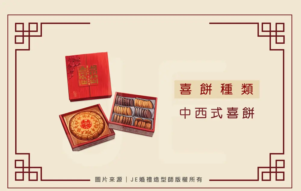 喜餅 為文定儀式中的六禮之一,其意義是用來向親朋好友宣布喜訊並分享喜悅。在現代最常見的喜餅種類可分為中式與西式,本篇將來完整介紹它們的特色,除了讓讀者了解喜餅種類的差異外,同時也希望能幫助新人根據自己的需求喜好選擇理想的喜餅。 喜餅 種類
